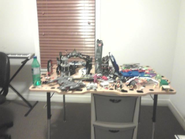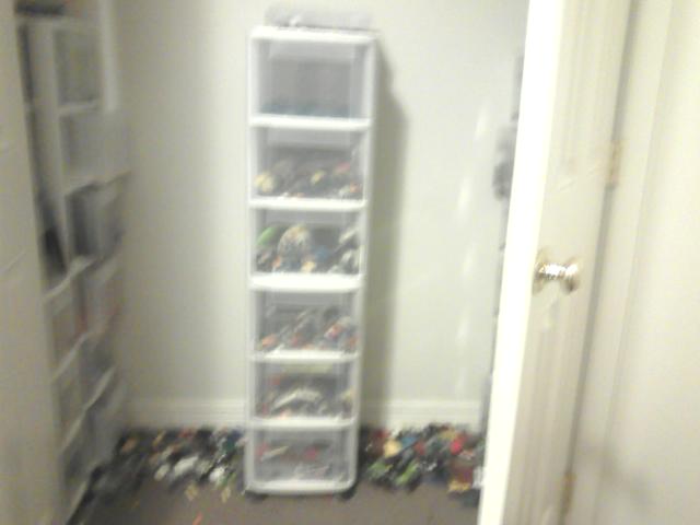 Picture a room strictly for Lego building, stop motion filming, music composing, green screen movie creations, etc. Here's a couple of photos. The 2nd one is the closet - which had bin towers full of Legos.