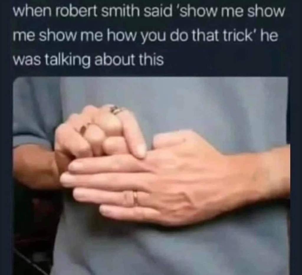 "Show me, show me, show me how you do that trick The one that makes me scream", she said "The one that makes me laugh", she said And threw her arms around my neck